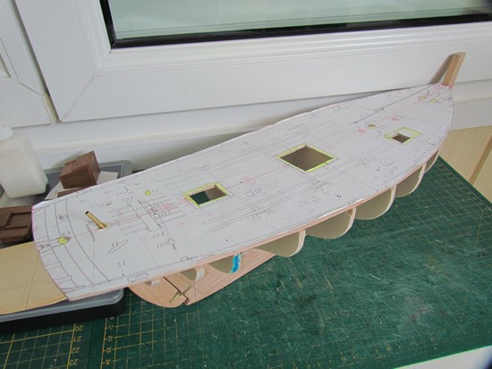 Le chantier. La ligne de flotaison est parallèle au chantier.
