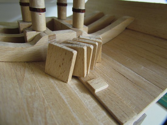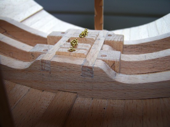 varangues sèches, flasques et taquets du grand mât.